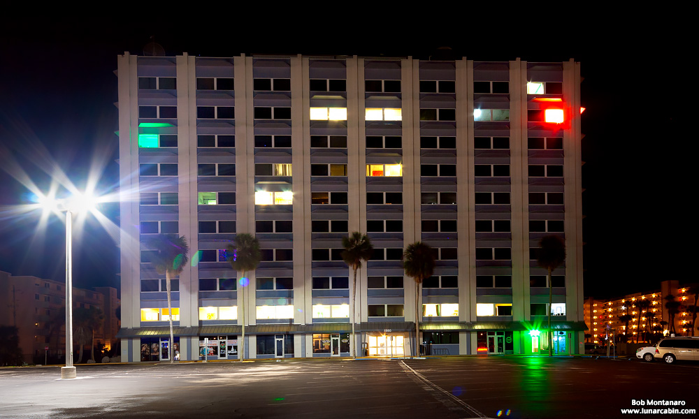 The red light emanating from the 9th floor office of the Cape Royal Office Building, built in 1963 in Cocoa Beach, has been a fixture for years of a business in that space that uses red lights to aid in weight loss.