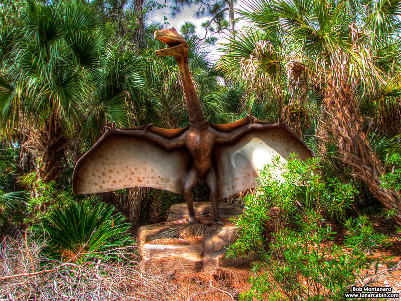 A Pterosaur emerges from the Florida landscape at the Brevard Zoo dinosaur exhibit.