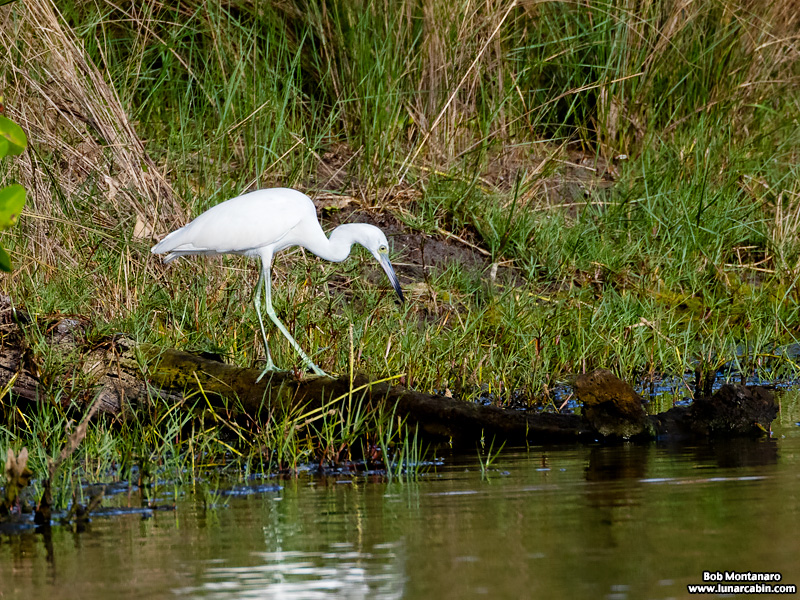 A juvenile Little Blue Heron. This juvenile’s white feathers will turn blue as it matures.