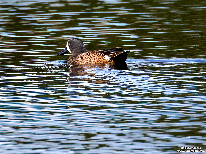 We saw only a handful of ducks on the tour, including this Blue-winged Teal in the pond along the Centennial Trail. Note the crescent Moon-shaped white mark on its dark-colored head identifying this as a male Blue-winged Teal. Females lack these features and are considerably drabber in appearance.