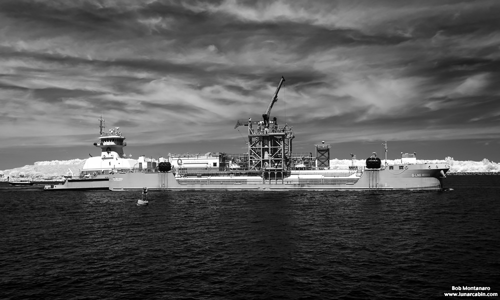 2025/04/21 • 0 Q-LNG 4000 Image #250421 The liquified natural gas tanker that refuels ships at Port Canaveral. Share this: Click to share on X (Opens in new window) X Click to share on Facebook (Opens in new window) Facebook Click to email a link to a friend (Opens in new window) Email Like Loading... Related Categories: Infrared Tagged as: black and white photography, Infrared, liquified natural gas, Port Canaveral, Tanker
