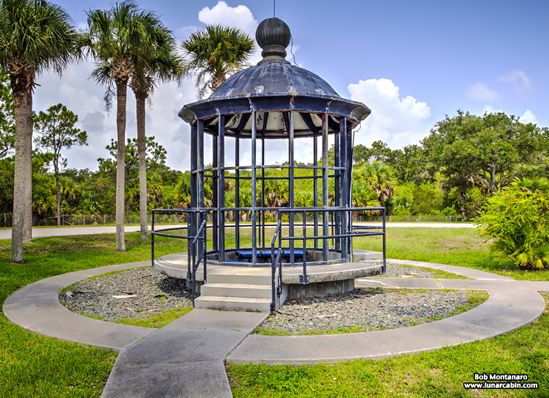 A gazebo made in the original shape of the Cape Canaveral Lighthouse lantern room from the top of the lighthouse built in 1868. The copper vent ball at the top is from the original lighthouse. The gazebo is on the grounds of the Cape Canaveral Space Force Museum’s exhibits at Launch Complex 5/6 at Cape Canaveral Space Force Station.