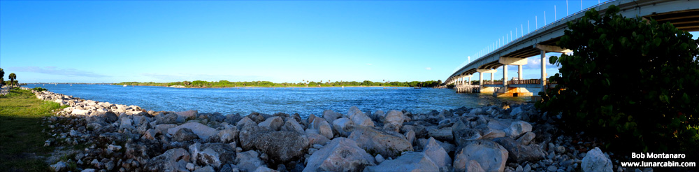 The bridge spans the border of two counties, with Brevard County to the north across the inlet and Indian River County on the south side.