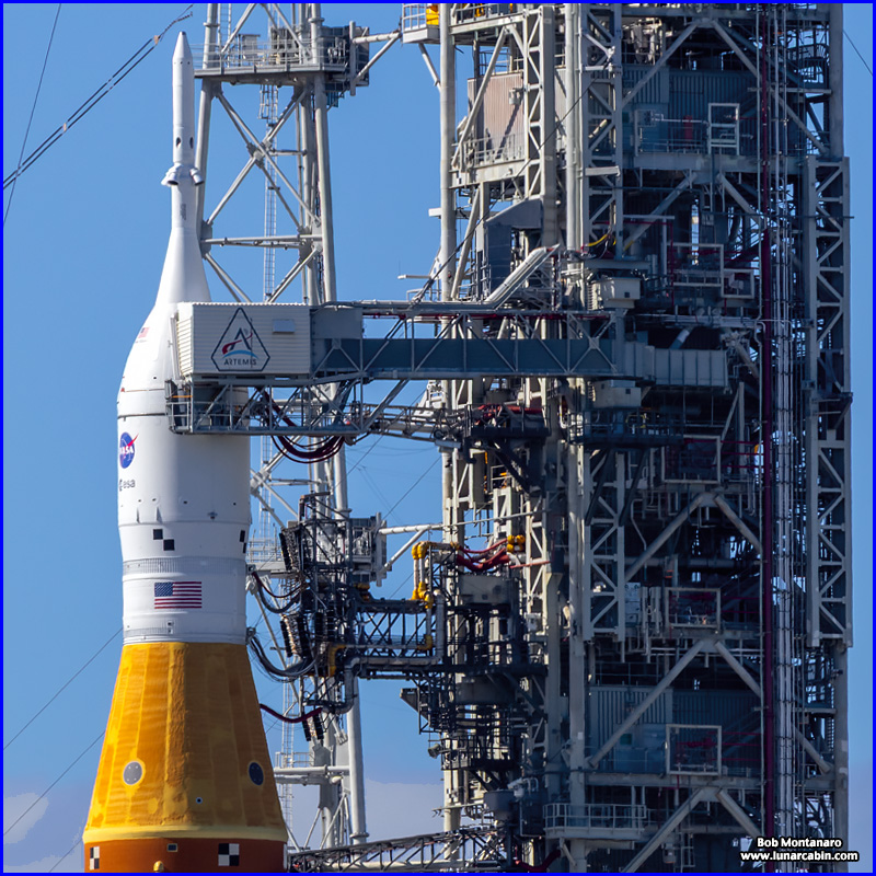 I had the opportunity to see NASA’s mighty Moon rocket, Artemis 2, on the launch pad at Kennedy Space Center the afternoon of 23 January 2026. The planned launch in February will take four astronauts, Commander Reid Wiseman, Pilot Victor Glover, Mission Specialist Christina Koch, and Canadian Space Agency Mission Specialist Jeremy Hansen, on a 10-day mission to orbit the Moon. This is the first crewed test of the Space Launch System (SLS) rocket and the Orion spacecraft.