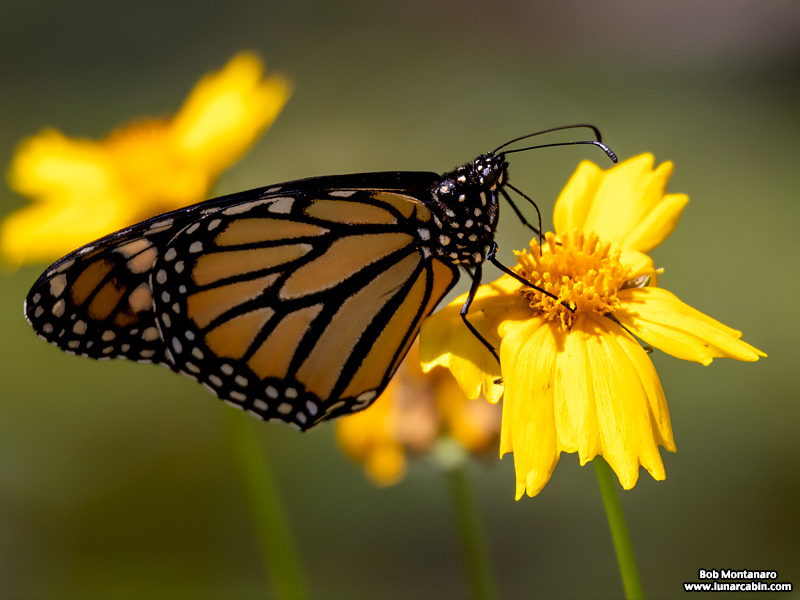 A Monarch Butterfly foraging in the native plant landscaping at Audubon House in the Oslo Riverfront Conservation Area.